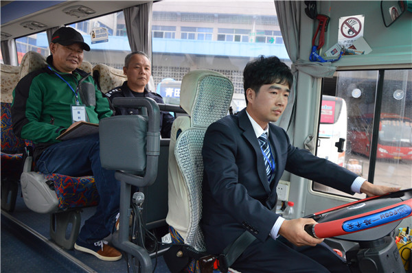 技能比武分安全駕駛常識比試和駕駛操作技能比武兩部分。安全駕駛常識比試以電腦當(dāng)場作答方式進(jìn)行,比試題目從理論考試題庫中隨機抽取。駕駛操作技能比武模擬迎接旅客上車、發(fā)車前安全承諾、途中安全駕駛和車輛回場送客等幾個環(huán)節(jié)進(jìn)行。比武邀請市交警支隊警官、市運管局運安科領(lǐng)導(dǎo)及麗汽集團(tuán)汽校管理人員擔(dān)任裁判。