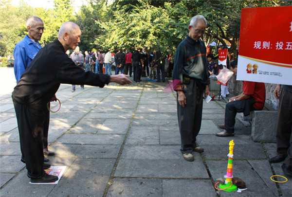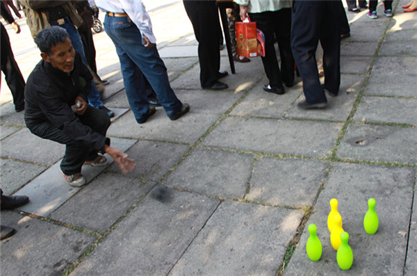本次游園活動主要以快樂小型游戲為主,有飛鏢、跳繩、踢毽、夾彈珠、釣魚、保齡球、投圈、投沙包、兵乓球擊準、大轉(zhuǎn)盤、呼啦圈等,項目既簡單,又富有趣味性,深受老年人的喜愛,大家在歡笑聲中愉悅了身心,增進了彼此的感情。