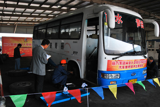 11月13日上午9點(diǎn)整,汽車維修技術(shù)比賽在快客分公司修理車間舉行,快客分公司修理車間和客長(zhǎng)運(yùn)分公司修理車間各派出4名選手,選手根據(jù)抽簽,完成前橋、后橋作業(yè)。快客分公司李建波、客長(zhǎng)運(yùn)分公司武賢強(qiáng)、快客分公司管巧全分獲前三名。