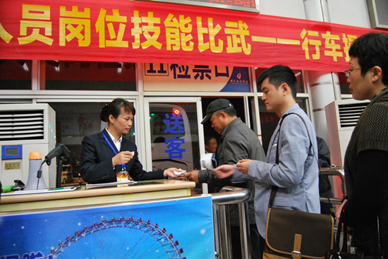 站售操作比賽11月14日晚,在旅游集散中心舉行??瓦\(yùn)東站、客運(yùn)西站分別派出4名選手參賽。經(jīng)過角逐,客運(yùn)西站封慧麗、客運(yùn)東站魏麗、客運(yùn)西站林莉分獲前3名。