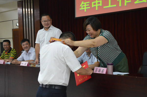 7月28日下午,麗汽集團在召開年中工作會議、第三季度安全生產(chǎn)例會暨護航G20工作會議前,隆重表彰了長運分公司的吳斌再次榮獲全國“愛崗敬業(yè)駕駛員楷?!睒s譽稱號。麗汽集團黨委書記、董事長葉茂為吳斌頒發(fā)榮譽證書、麗汽集團工會主席呂麗君為吳斌佩戴獎章。
