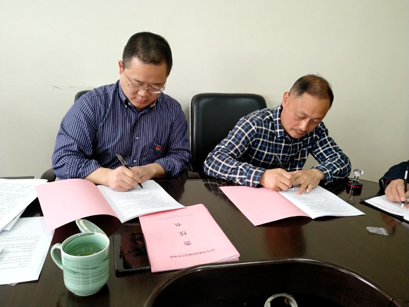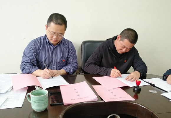 圖為集團(tuán)公司黨委與黨辦及各黨支部簽訂《黨的建設(shè)工作考核責(zé)任書》