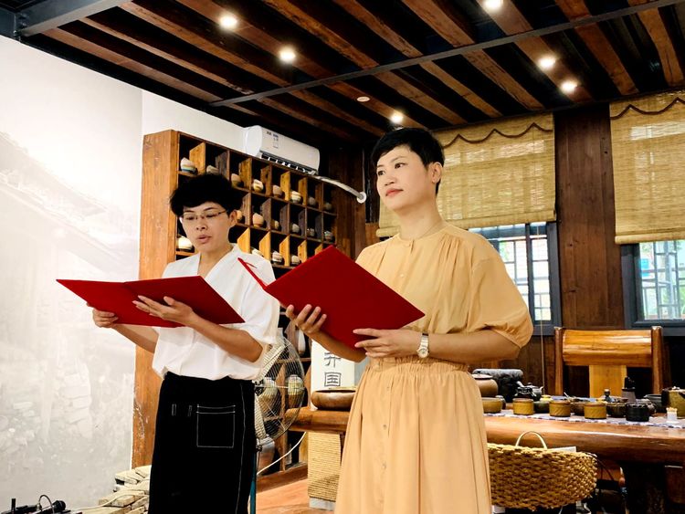讀書會(huì)現(xiàn)場(chǎng),香茶鮮果飄香,古箏雅韻和鳴,參加活動(dòng)的不僅有麗汽集團(tuán)讀書會(huì)的讀友,還有來自麗水朗讀團(tuán)的嘉賓。他們當(dāng)中還有兩位麗水朗讀界的大咖,國(guó)家一級(jí)播音員文馨老師和麗水廣電總臺(tái)的主任播音員海峰老師。