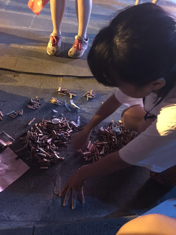 工作人員清點(diǎn)煙頭