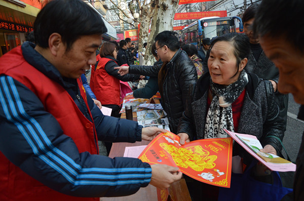 為了讓麗水市區(qū)群眾度過一個(gè)安樂、祥和、文明、喜慶的節(jié)日,在新春佳節(jié)即將來臨之際,市直機(jī)關(guān)黨工委組織17家單位在中山街開展了以“迎新春 送祝福”為主題的黨員服務(wù)一條街活動(dòng)。