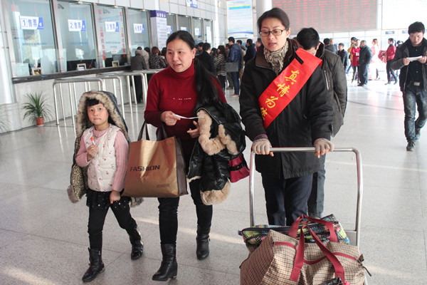 隨著2月4日“青春志愿行,溫暖回家路”2015年志愿者服務(wù)春運(yùn)“暖冬行動(dòng)”的啟動(dòng),2月5日,客運(yùn)西站黨員志愿者服務(wù)隊(duì)和“流動(dòng)之家”志愿者服務(wù)隊(duì)也正式拉開志愿者服務(wù)春運(yùn)“暖冬行動(dòng)”的序幕。志愿者們將在整個(gè)春運(yùn)期間,在售票廳、進(jìn)站口、服務(wù)臺(tái)等位置,為旅客提供咨詢、引導(dǎo)、扶老攜幼,自助售票導(dǎo)購(gòu)等服務(wù)。