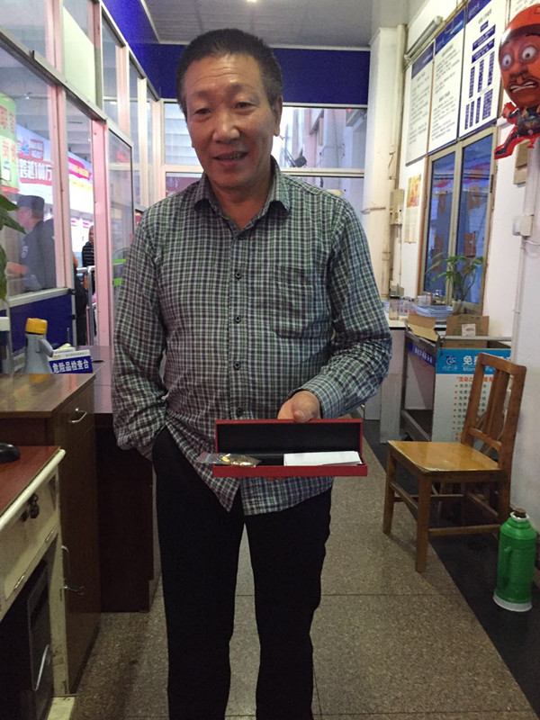 10月24日8點(diǎn)左右,在客運(yùn)東站總臺(tái),一位名叫柯玉榮的旅客捧著價(jià)值一萬多元、重達(dá)50克的金燦燦的金項(xiàng)鏈激動(dòng)萬分地說:“真是太感謝你們了,你們追回的不僅僅是一條金項(xiàng)鏈,更是我兒子的一份孝心,沒想到因?yàn)槲业拇中陌阉湓诹耸燮贝翱谔?。?br/> 面對(duì)失而復(fù)得的禮物,柯玉榮旅客激動(dòng)不已。