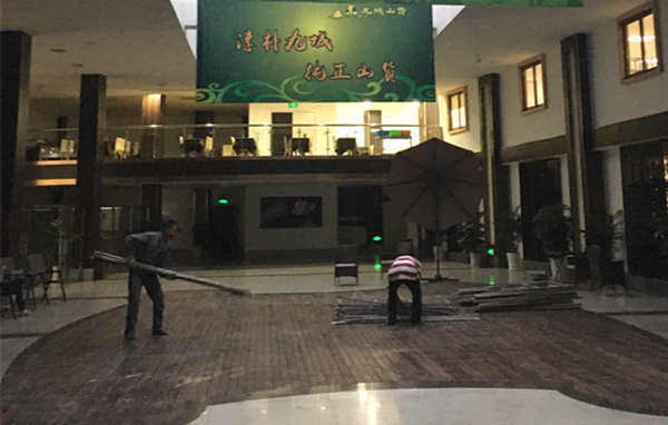 正在九城山貨布置現場的同事