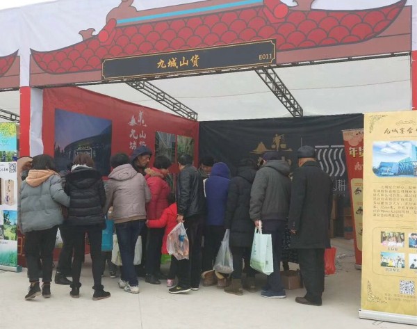 農(nóng)博會(huì)現(xiàn)場(chǎng)九城山貨攤位前