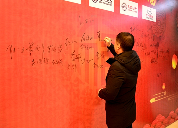 簽名墻前,麗汽集團領(lǐng)導(dǎo)、到會嘉賓紛紛簽名留念,相談甚歡!字里行間,書寫了對汽車4S店員工一年來的肯定贊許,笑語聲中,也充滿對新一年的期盼和祝愿!
