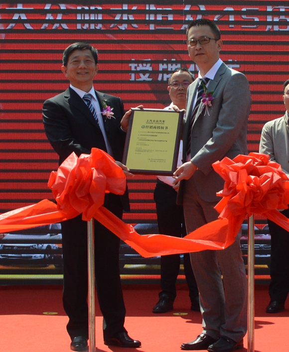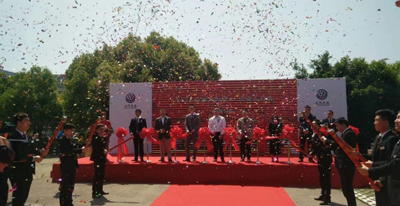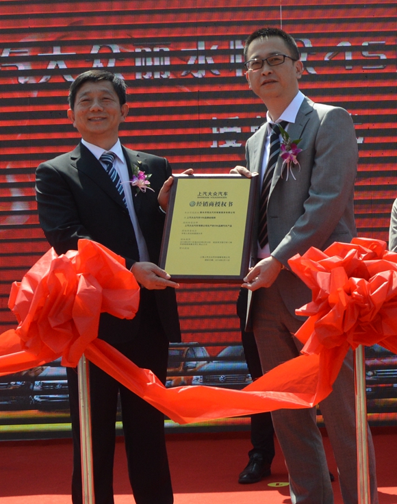 開業(yè)慶典儀式上,上汽大眾華東分銷中心副總經(jīng)理張磊鄭重地將上汽大眾汽車經(jīng)銷商授權(quán)牌匾交到麗水市恒眾汽車銷售服務(wù)有限公司董事長(zhǎng)何赤詮手上。