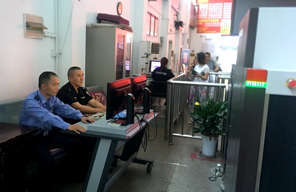 進站安檢崗位上,保衛稽查科員們認真甄別禁止攜帶進站的危險品和違禁品,為廣大乘客的生命財產安全筑起安全防線。