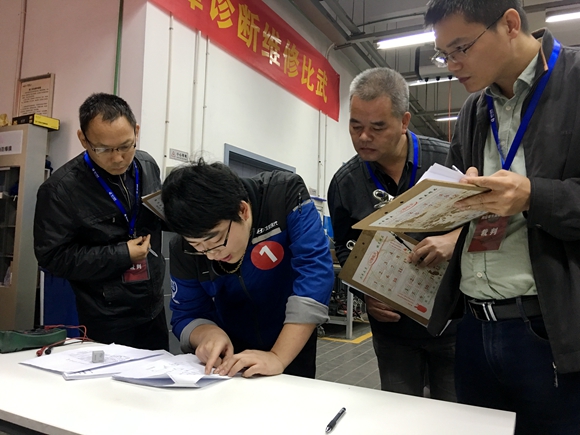 與此同時(shí),在甌龍公司維修車間舉行的車輛故障維修診斷比武緊鑼密鼓的進(jìn)行著。比賽指定車型為雪佛蘭科魯茲,考核內(nèi)容設(shè)置4個(gè)故障點(diǎn),涉及發(fā)動(dòng)機(jī)控制系統(tǒng)的傳感器、執(zhí)行器、控制線路與發(fā)動(dòng)機(jī)機(jī)械系統(tǒng)。主要有前期準(zhǔn)備、故障確認(rèn)、故障代碼確認(rèn)、故障范圍確定、部件測試及電路測量、故障部位確認(rèn)、提出排故思路等環(huán)節(jié)。比賽時(shí)間從早上8點(diǎn)半一直持續(xù)到下午三點(diǎn),選手們認(rèn)真鉆研、勇于探索,真正體現(xiàn)了技術(shù)人員的專、精、尖。
