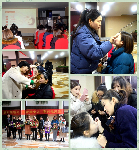 在美妝分會場,集團公司的“名模”雷冰帆給大家講解化妝基礎知識,教大家如何認識自己的臉型、皮膚和五官;如何化眼妝、底妝、整妝。實踐操作階段分組選出素顏模特和化妝師,現場進行化妝美妝,經過女工們的妙手化妝,化妝后出落成美女。老師進行現場點評,最后大家根據化妝前后對比,進行投票,選出美妝女王。