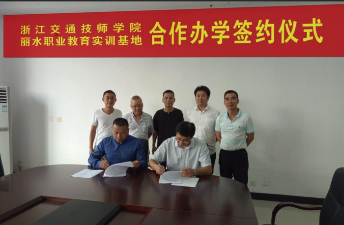 9月28日,實訓基地與浙江交通技師學院舉行了第三輪校校合作辦學簽約儀式。浙江交通技師學院黨委書記、院長李忠躍,麗水市職業教育實訓基地有限公司董事長王興平、總經理麻向健等領導參加簽約儀式。