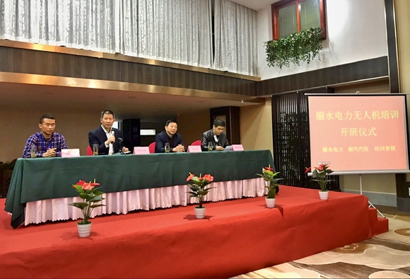11月11日,汽校首期無人機駕照培訓班如期開班,首期報名的56名學員在九城宴會中心參加開班儀式。麗水市供電公司副總工程師楊成鋼、麗汽集團常務副總經理何赤詮、杭州智翔航空技術有限公司技術總監姚金剛應邀參加了開班儀式并講話。