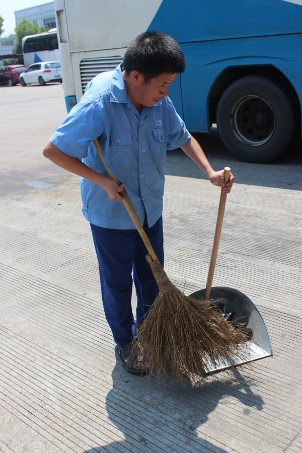 “中午時(shí)間這么熱,受得了嗎?” 他笑笑回答道:“熱是熱,既然來上班,工作總是要認(rèn)真的做好。” 站場(chǎng)發(fā)車區(qū)以及通道衛(wèi)生都是宓建文今天當(dāng)班的清掃范圍,他頂著烈日掃上一圈至少要半個(gè)小時(shí),每次掃完在下客區(qū)稍坐片刻,喝上一口水,又提著簸箕和掃把開始新一輪的清掃。他說:“要是時(shí)間間隔再長(zhǎng)些,垃圾就會(huì)多,特別是發(fā)車區(qū)前是旅客檢票上車的必經(jīng)之路,不清掃勤些,有損車站整潔衛(wèi)生的形象。”