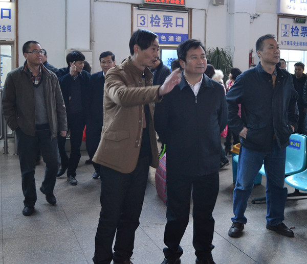 2月13日上午,麗水市市長黃志平及市各有關(guān)單位領(lǐng)導(dǎo)在集團(tuán)公司董事長葉茂和東站經(jīng)理江小華的陪同下,對東站的春運(yùn)安全工作進(jìn)行了視察。