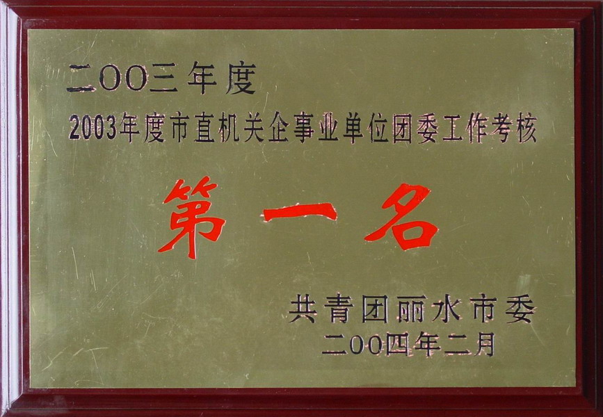 2003年度麗水市直機關(guān)企事業(yè)單位團委工作考核第一名