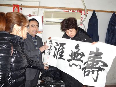 終于,神色焦急的楊先生進(jìn)入了宣主任的視線,她主動(dòng)上前詢問。一聽到有人撿到包,楊先生心情很激動(dòng),趕緊跟著宣主任到行包受理室查問。最后經(jīng)過核對(duì)確認(rèn),小田撿到的包正是他丟失的;經(jīng)清點(diǎn),包內(nèi)物品一件不少。楊先生說,他是代表山東泰山文化藝術(shù)研究院來麗水聯(lián)系中國藝術(shù)文化交流的;筆記本電腦里全是文化交流的資料,對(duì)他來說非常重要,他非常感動(dòng),非要重重酬謝小田和宣主任不可。當(dāng)楊先生聽到宣主任說,東站的工作人員拾物都會(huì)上交歸還時(shí),就對(duì)東站的領(lǐng)導(dǎo)給予員工的教育培養(yǎng)深表欽佩。為表示感謝,楊先生堅(jiān)持要贈(zèng)送給小田一幅他的墨寶“壽無涯”,喻示著好人一生平安,好人長壽無疆。