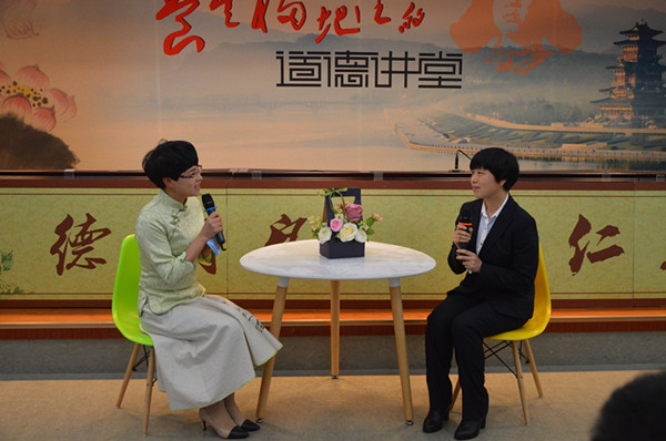 “最美辦公室主任”徐明霞(右)分享自己的心路歷程