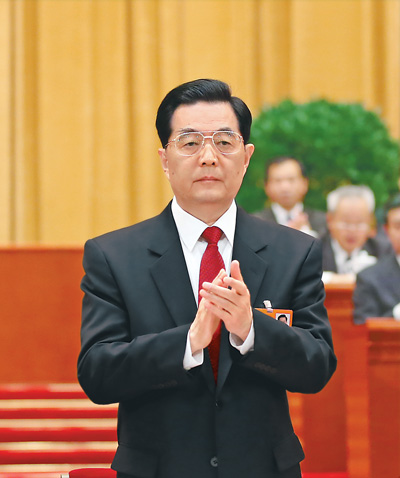 習(xí)近平表示,胡錦濤同志擔(dān)任國家主席10年間,以豐富的政治智慧、高超的領(lǐng)導(dǎo)才能、勤勉的工作精神,為堅持和發(fā)展中國特色社會主義建立了卓越的功勛,贏得了全國各族人民衷心愛戴和國際社會普遍贊譽(yù)。在習(xí)近平的提議下,全場以熱烈掌聲,向胡錦濤表示衷心的感謝和崇高的敬意。