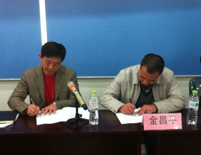 集團(tuán)公司常務(wù)副總何赤詮與金副處長簽訂安全生產(chǎn)責(zé)任書
