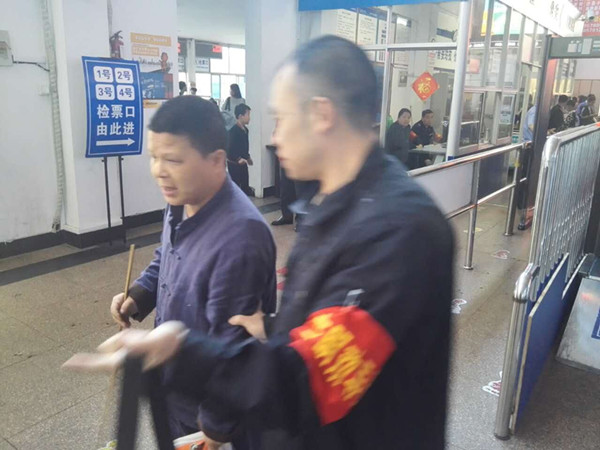 金翔心想,那位盲人肯定是要來買票坐車的。于是他趕忙走上前去,他一邊扶著盲人一邊嘴里不停地提醒道:“再走兩步就要左拐了,這里有一堆行李,我們稍往右一點?!?br/> 經了解,原來盲人是要去云和的。知道了盲人的目的地后,金翔到售票窗幫助盲人買好了車票,并一路牽著他過安檢,替他檢了車票,扶他上了車,又交待駕駛員下車出站要幫助他。盲人旅客眼睛雖然看不見,但是金翔為他做的一切他都非常清楚。他說:“你們麗水車站真好,雖然我看不到,但我可以感覺到,你們車站一定是一個很有愛心的車站,我上次來是一個女的服務員幫助了我,我一直覺得做保衛(wèi)工作的都是很兇的,沒想到你們東站的保衛(wèi)也這么好……謝謝,謝謝你啊”“不用客氣,這是我們應該做的,以后你來我們麗水,打個電話給我們,我們提前去門口接你?!苯鹣璧倪@一暖心行動,贏得了車廂里響起了熱烈的掌聲。