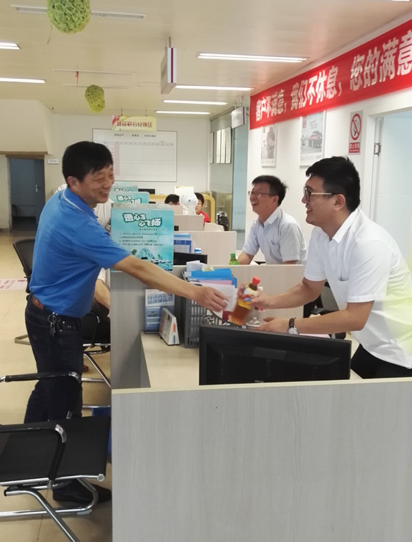 送涼活動(dòng)分三個(gè)小組進(jìn)行,黨委書記葉茂、常務(wù)副總何赤詮、工會(huì)主席呂麗君分別到機(jī)關(guān)、西站、東站片區(qū)送涼。他們每到一處與員工親切交談,囑咐他們注意安全生產(chǎn),做好防暑降溫工作,特別要注意勞逸結(jié)合。