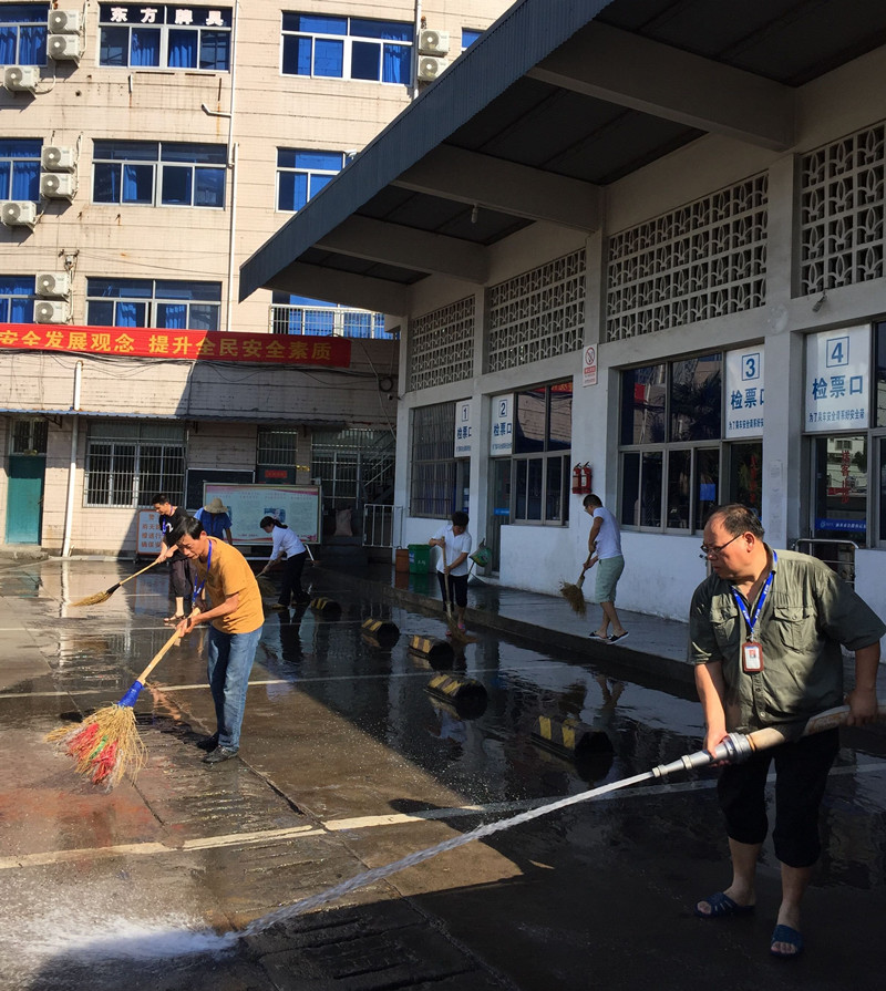 為了迎接24日至26日省專家的文明城市檢查,7月22日下午3時(shí),東站黨員骨干志愿者們頂著41度的高溫,在江小華書記的帶領(lǐng)下,主動放棄休息時(shí)間,帶著消防水帶、掃把等工具,對發(fā)車區(qū)進(jìn)行了徹底的清洗。
