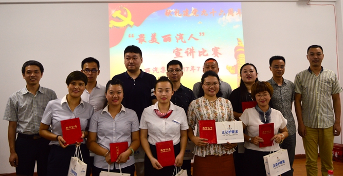 為了深化“最美麗水人”主題實踐活動,深入挖掘麗汽黨員員工在實施企業(yè)轉型升級、創(chuàng)業(yè)創(chuàng)新發(fā)展等重點工作中敢于攻堅破難、敢于擔當實干的先進事跡和先進人物,進一步弘揚麗汽“最美”精神,向黨的十九大獻禮,7月25日晚,麗汽集團黨委、工會、團委聯(lián)合組織開展了“最美麗汽人”主題宣講比賽。來自麗汽集團及下屬單位的16名選手參加角逐。麗汽集團黨委委員、工會主席、團委書記等擔任評委。