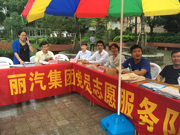 活動當(dāng)天,麗汽集團(tuán)的黨員們一早就來到燈塔公園,面向廣大群眾展開了汽車班車時刻咨詢、汽車銷售維修、汽駕培訓(xùn)咨詢、旅游咨詢、房產(chǎn)銷售咨詢等多項服務(wù)。雖然天空中飄著雨,但黨員同志和社區(qū)群眾的熱情不減,短短半天時間,黨員們共向到場群眾發(fā)放宣傳冊頁及資料2000份,解答咨詢60人次,贈送雨傘200余把,紙巾100盒,環(huán)保袋500只,惠及群眾800人次。