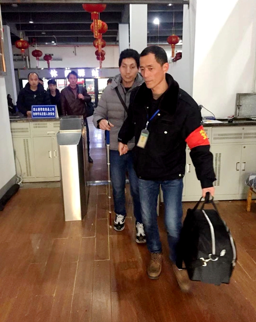 3月2日中午,高鐵站售票廳內(nèi)旅客如往常一樣多。保衛(wèi)范國祥在自己的工作崗位上,看到一位拄著捌棍的男子,他背著包手提行李。范國祥意識到這是一位盲人,考慮他因?yàn)榭床灰妼?dǎo)致行動不便,連忙跑上前去詢問他是否需要幫助。詢問后得知這位盲人旅客想要購買最近一班前往龍泉的車票。范國祥聽后先攙扶著盲人旅客到候車廳的座位上坐下,接著為他買了一張13:07前往龍泉的車票,由于離檢票還有一段時間,范國祥就讓他安心等待。到檢票時,范國祥一手牽著盲人旅客,一手拿過盲人旅客的行李,上了車并幫他找到了座位。旅客很是感動,嘴上不停說著謝謝。安頓好旅客之后,范國祥還叮囑司機(jī),到站的時候幫助這位盲人旅客下車。